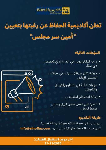 مطلوب موظف إداري للعمل لدى أكاديمية الحفاظ في عمّان