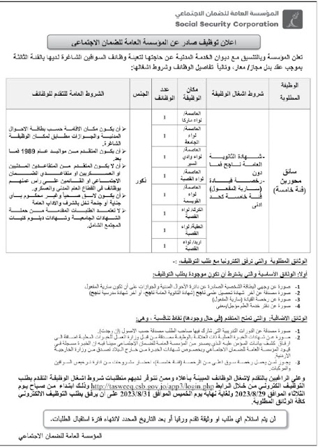 مطلوب سائقين برواتب ممتازة للعمل لدى الضمان الاجتماعي الاردني