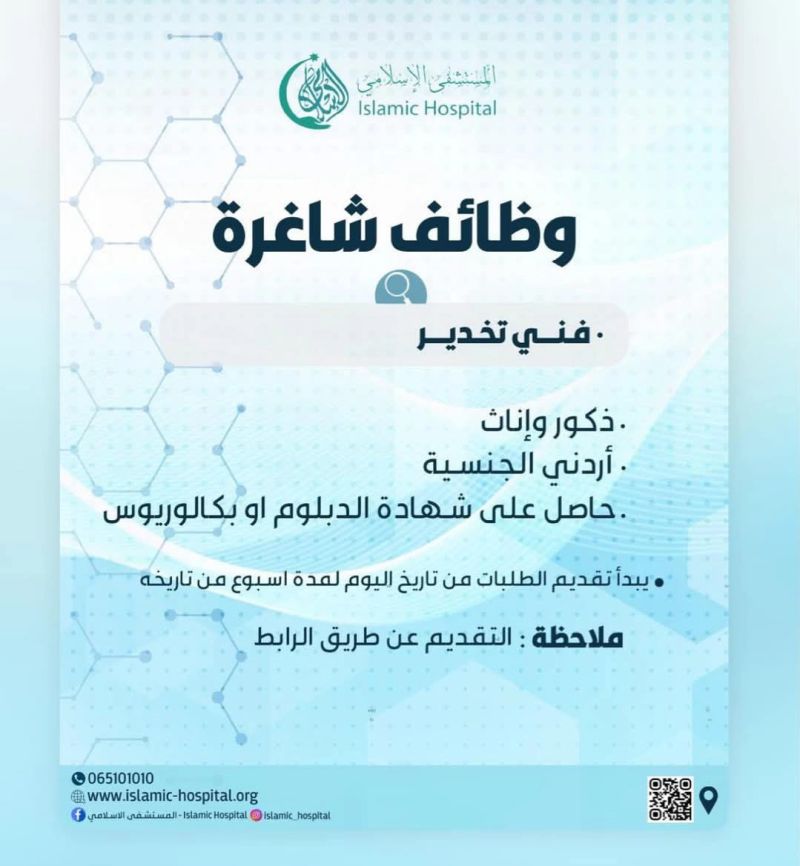 وظيفة شاغرة لدى المستشفى الإسلامي