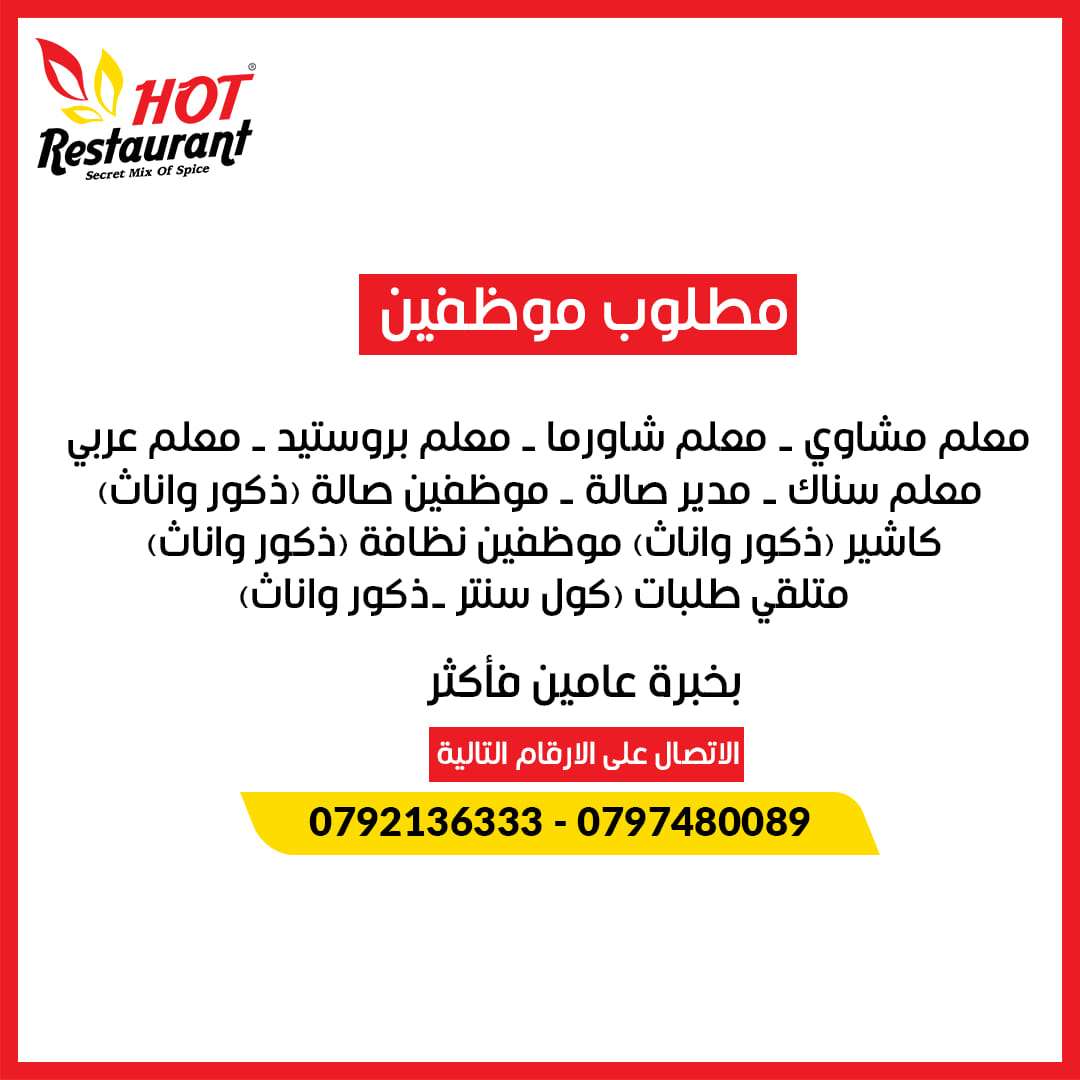 مطلوب موظفين لدى مطعم الساخن من كلا الجنسين