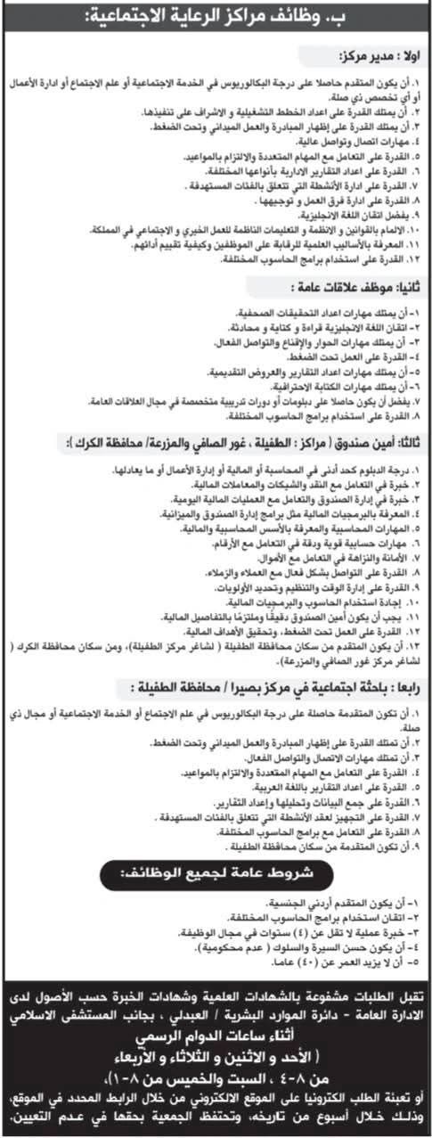 تُعلن جمعية المركز الإسلامي الخيرية عن توفر عدد من الوظائف الشاغرة ضمن كوادرها