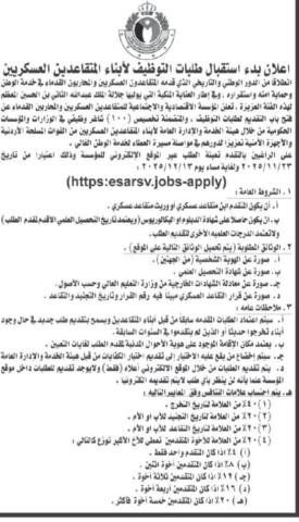 إعلان بدء استقبال طلبات التوظيف لأبناء المتقاعدين العسكريين
