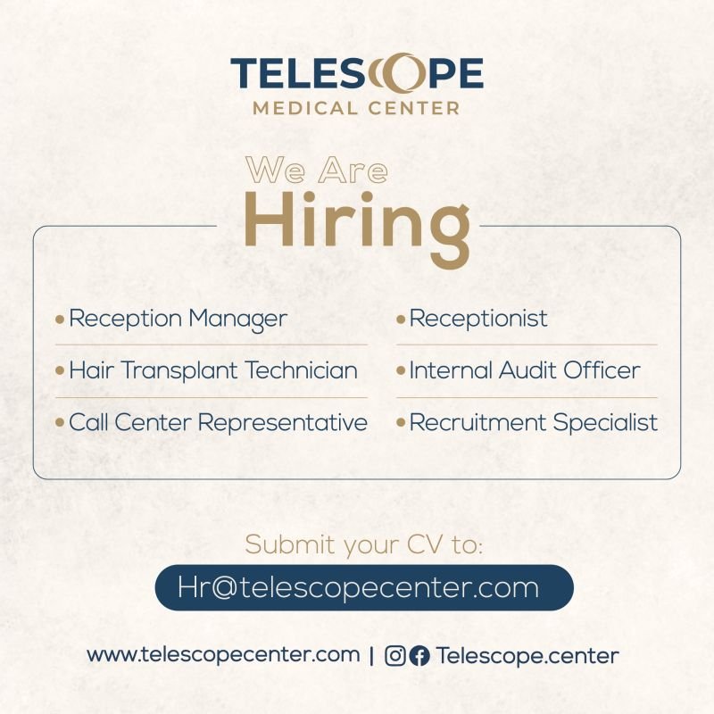 فرص عمل مميزة لدى مركز تلسكوب الطبي في عدة تخصصات